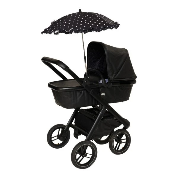 De Bellasol Stippen Parasol is een ideale accessoire voor elke buggy of kinderwagen met een ovale of ronde stang. De parasol is gemakkelijk te bevestigen door middel van een clip en kan in alle richtingen worden gebogen. Zo zit je kindje altijd beschermd tegen de felle zonnestralen, warmte, wind en regen. Daarnaast is de parasol eenvoudig uit elkaar te halen, zo past de parasol makkelijk in de luiertas of onderin de kinderwagen. Verder is de parasol gemaakt van hoogwaardig materiaal en voorzien van een stijlvol ontwerp.