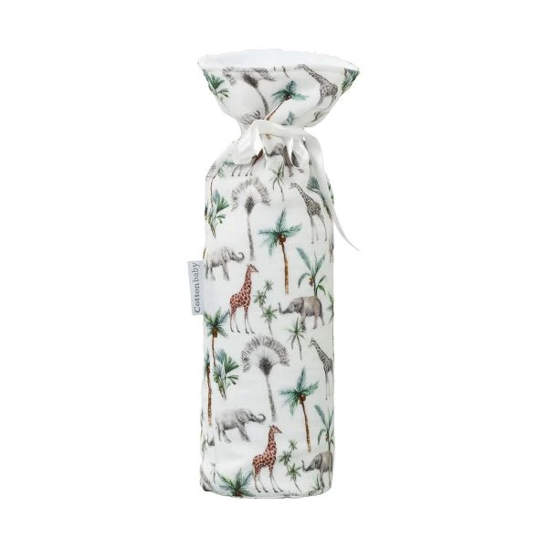 Deze Cottonbaby Soft Kruikenzak Savanne is geschikt voor een standaard kruik en is afgewerkt met een lint om de kruikenzak open dicht te doen.
