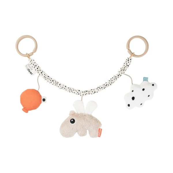 De Done By Deer Happy Clouds Wagenspanner Sand is een vrolijk speeltje dat je eenvoudig kunt bevestigen aan de kinderwagen of autostoel. Aan de wagenspanner hangen de vriendjes van Lalee die verschillende kleurtjes hebben. Dankzij de flexibele ringen kan je de wagenspanner makkelijk vast maken. Verder is het speeltje gemaakt van hoogwaardig materiaal en ideaal voor onderweg.